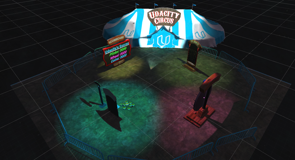 The scene you will be modifying is called Carnival.unity and is located int Assets/UdacityVR/Scences. As you can probably guess from the name, we have made a fun carnival scene for you to practice your skills on.