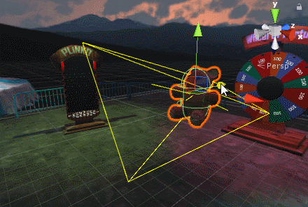 Your task will be to personalize and fix the broken Carnival games. In the scene, there is a scoreboard and 3 game machines: Plinko, the Wheel of Fortune, and Coin Toss.